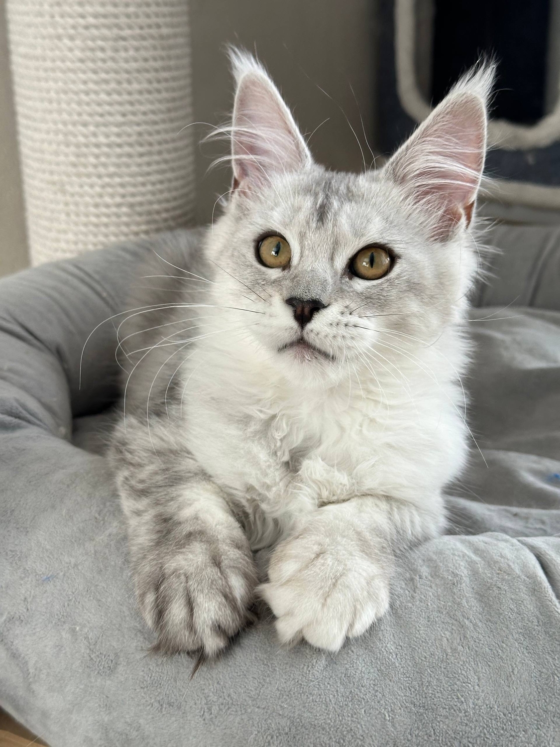 В нашей семье появился маленький и смышленый котёнок , к лотку приучен , очень любит играть с детьми , хорошо ладит с другой кошкой. Спасибо вам и вашему питомнику за такого хорошего и ласкового котика , процветания вашему питомнику ))))